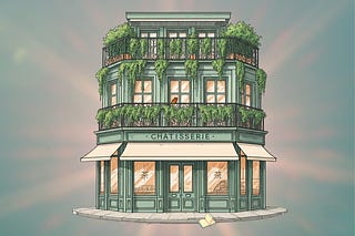 The café sat on a tree-lined street, its façade a muted pistachio green, while inside, soft yellow lights sparkled with the warmth of old diamonds.